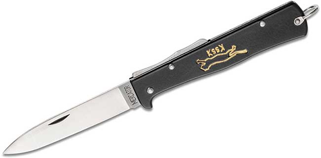 The 3.5" drop point blade is a classic profile and when closed the knife measures 4.25" in overall length. All K55s display the etched black cat logo that is filled in with gold paint. The Germans know how to make great knives and the K55 Black Cat is no exception and a worthy alternative to the French Opinel.