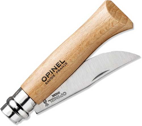 The Opinel is incredibly light at just over an ounce and a half due to the varnished beech wood handle. This wooden handle is also what gives the Opinel its distinctive look and feel. While the Opinel No. 8 is the original size, it does comes in a variety of blade lengths each designated by a different number.