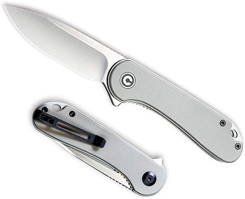 The Civivi Elementum handle comes in a variety of materials including G10, micarta, carbon fiber and wood. The slight curve and checkering provide a solid grip especially for one hand usage. Knives like the Elementum are made to be carried. As much as possible, the Civivi Elementum makes use of rounded edges to prevent snagging and also includes a deep-carry clip that lets you slide the Civivi discreetly into your pocket or waistband. Overall, the sleek yet sturdy design coupled with its affordable price makes the Civivi Elementum a great every day carry pocket knife.
